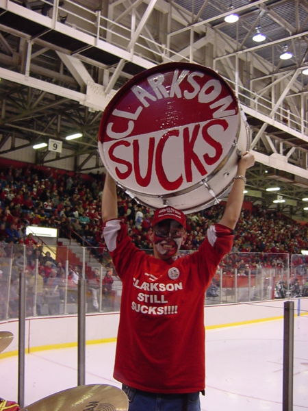 The Clarkson Sucks drum, being held up at its debut during Freakout 2002 by former member Brian Sell